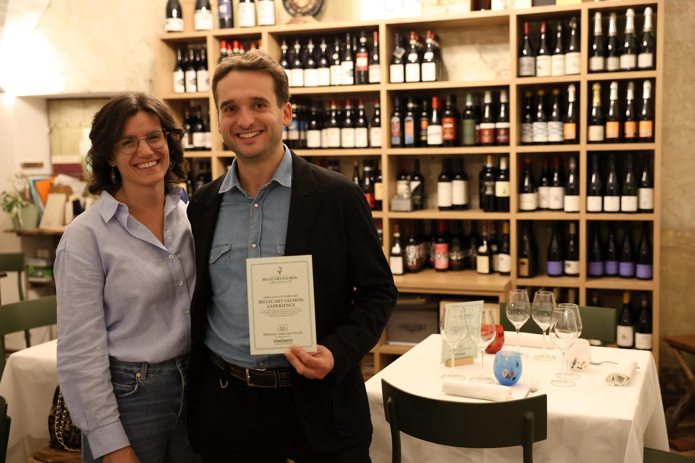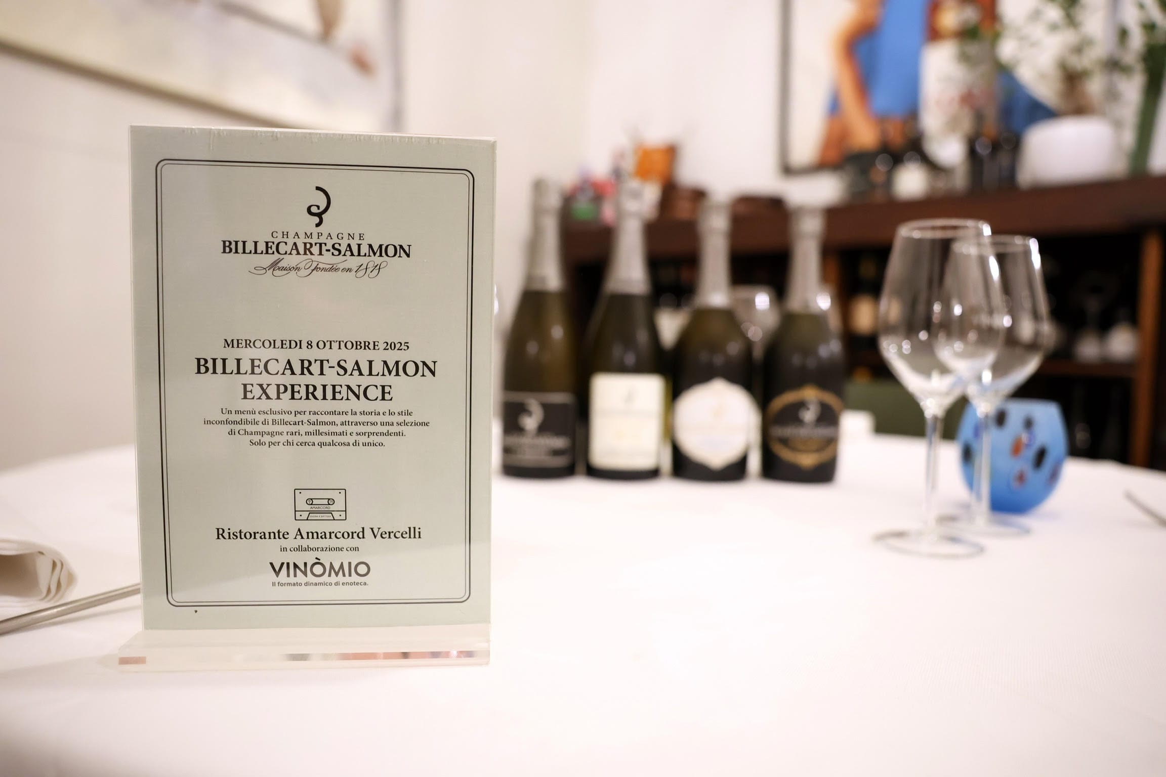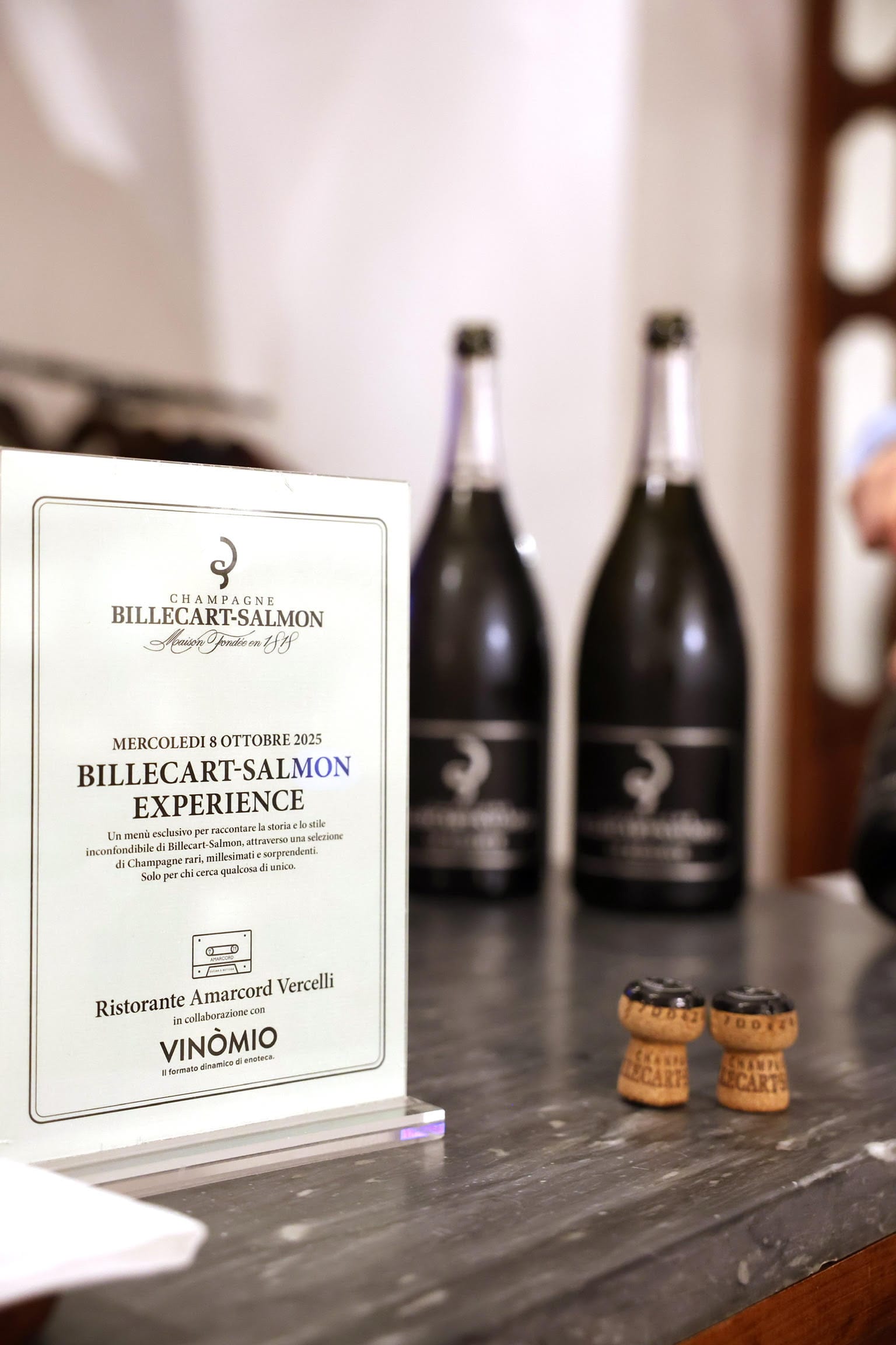 Mercoledì 8 ottobre 2025, Vinòmio ha collaborato con il ristorante Amarcord, lo chef Paolo Bullone e la maître Giorgia Giardini, con la partecipazione di Gil Grigliatti, Brand Ambassador Italia di Billecart-Salmon, per una serata davvero speciale dedicata alle grandi etichette della Maison.